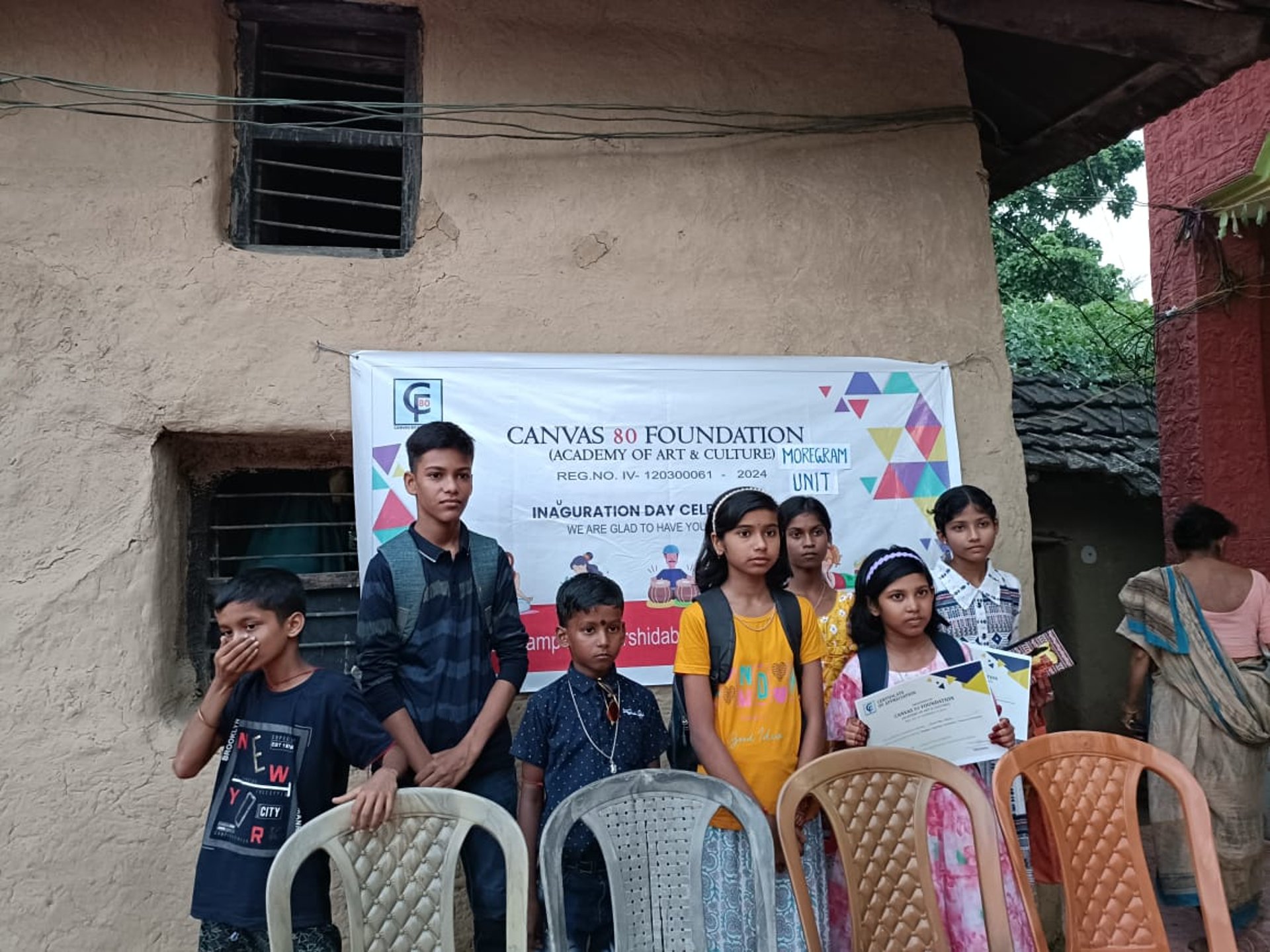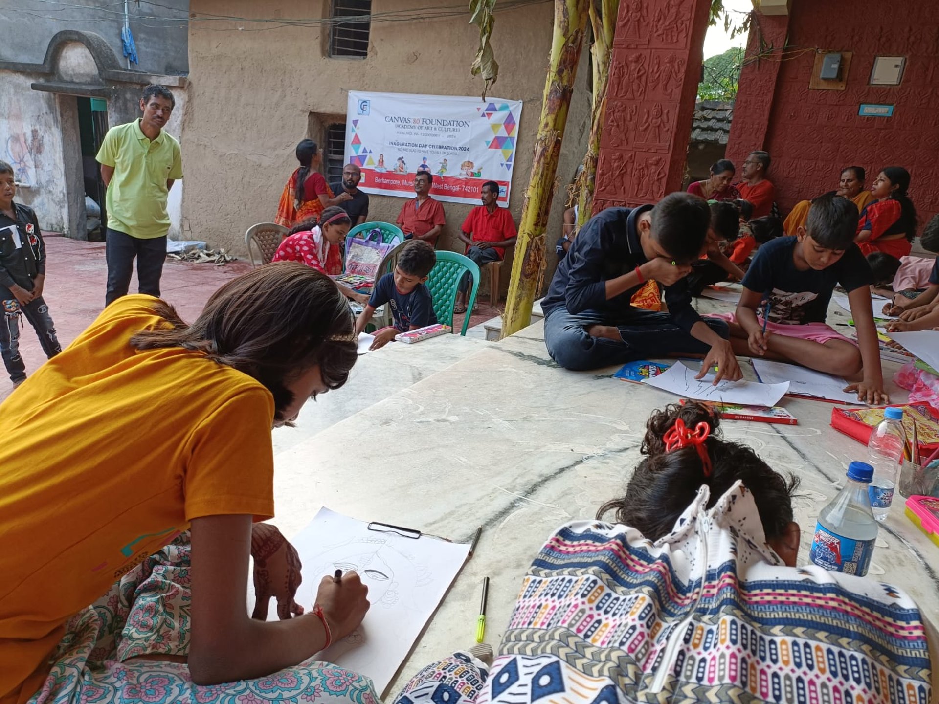 CANVAS 80 FOUNDATION (Academy of Art & Culture) successfully organised a vibrant Drawing Competition at Morgram Village, Murshidabad, on 12th October 2024. The event, held under the Morgram Unit, encouraged children and young participants to express their creativity through colours and imagination. The inauguration banner highlighted the foundation’s mission to promote art and cultural learning in rural communities. Local families, students, and volunteers actively took part, creating a warm and inspiring atmosphere. This initiative aims to nurture artistic talent at the grassroots level and provide a positive platform for young learners to showcase their abilities and grow with confidence.